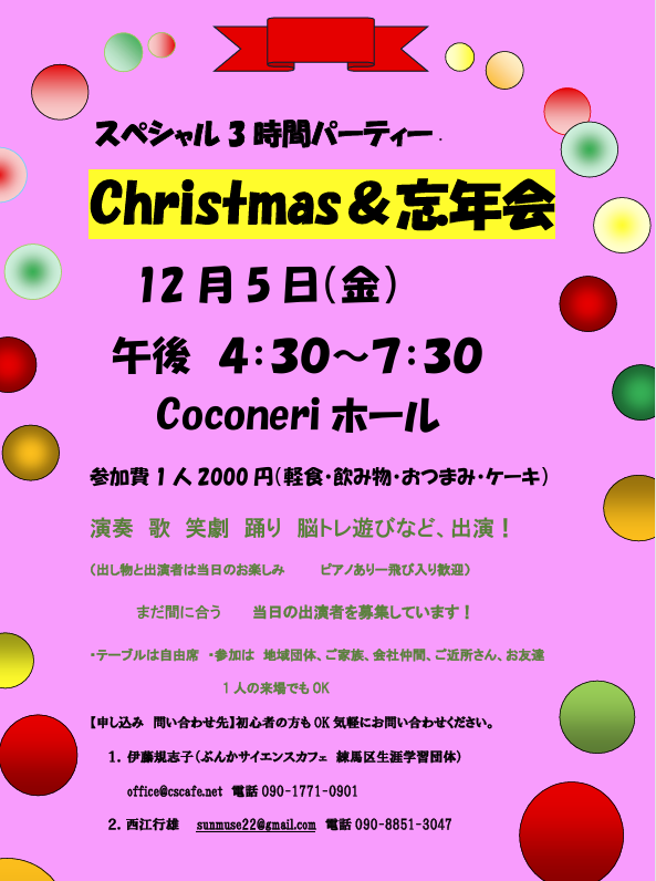 Christmas&忘年会 12月5日スペシャル3時間パーティー