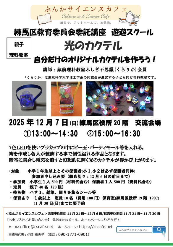 親子理科教室 12月7日 練馬区教育委員会委託講座 遊遊スクール