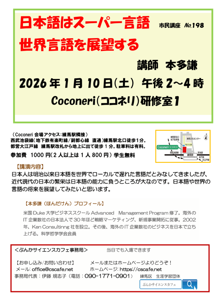 「日本語はスーパー言語世界言語を展望する 」 市民講座 No.198